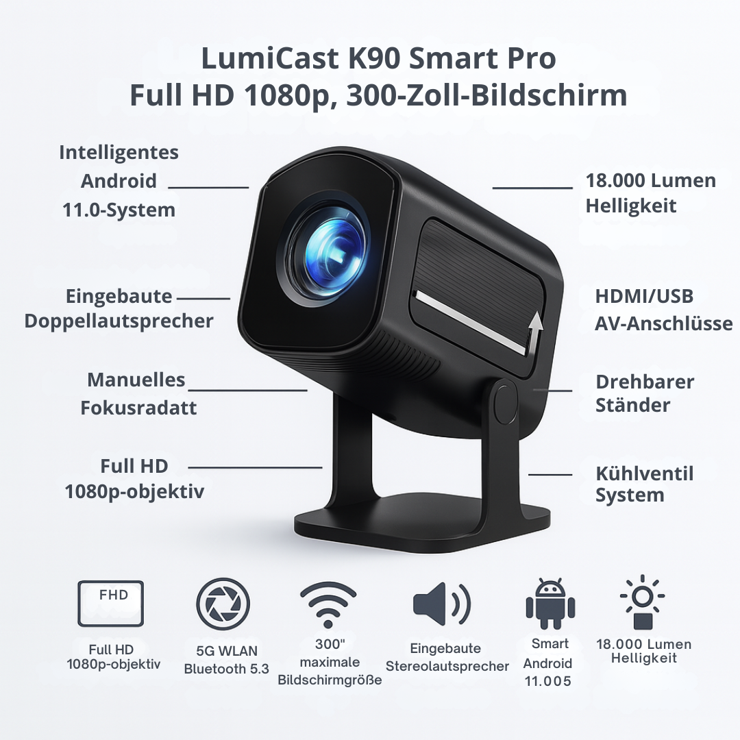 LumiCast K90 Smart-Projektor – Full HD 1080p mit Android-Unterstützung
