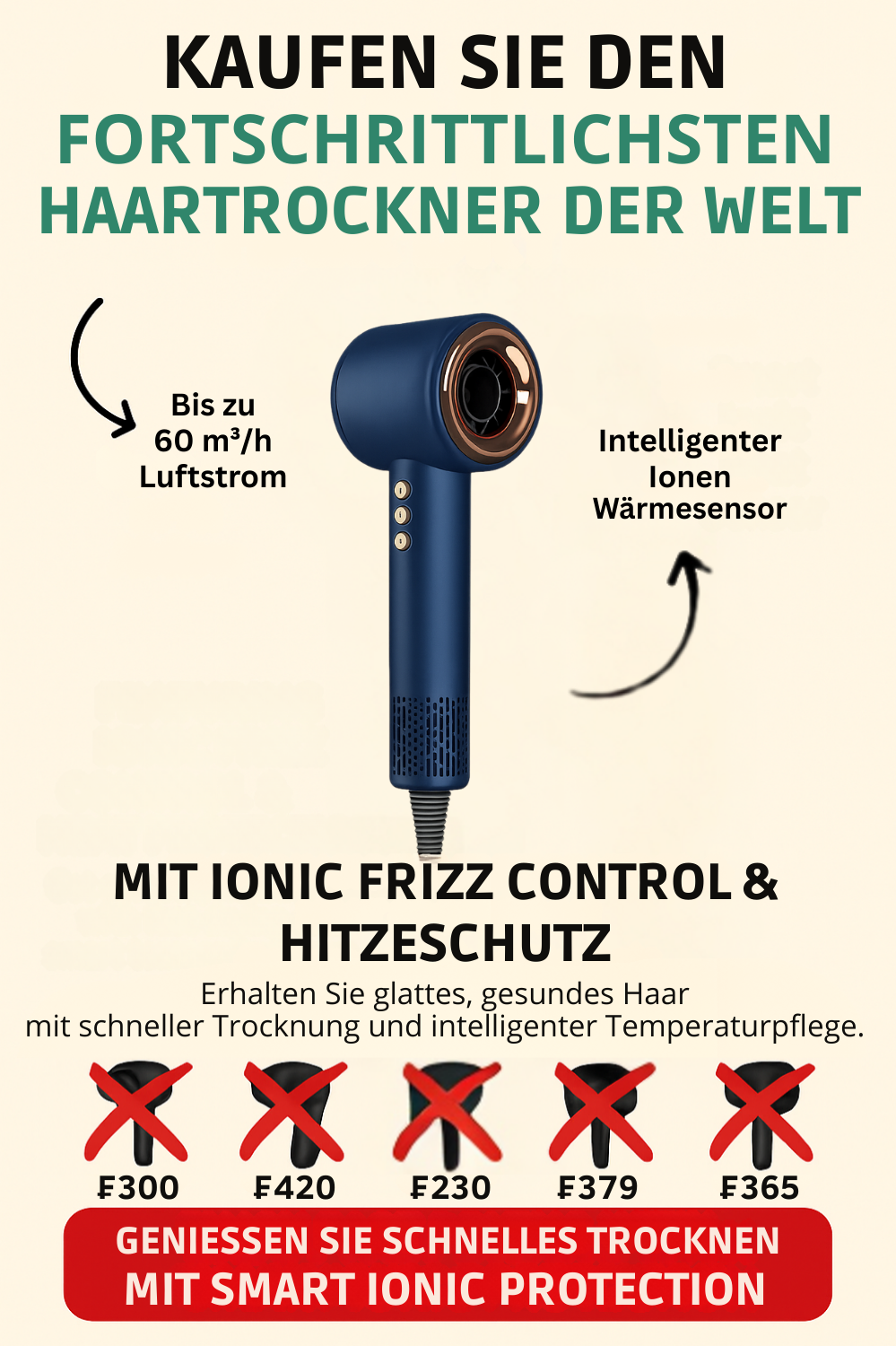Dachte, es wäre nur ein weiterer einfacher Haartrockner, aber es fühlt sich wie ein High-End-Gerät an. Die Ionenfunktion macht wirklich einen Unterschied – mein Frizz ist fast verschwunden und es trocknet so schnell!